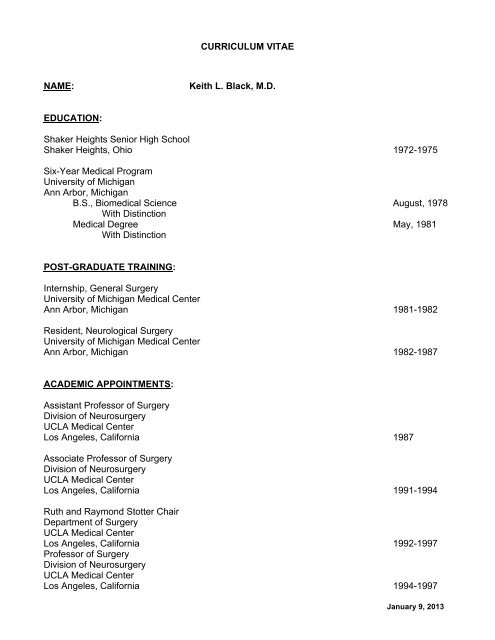 Curriculum Vitae Unameu Keith L Black M D Cedars Sinai